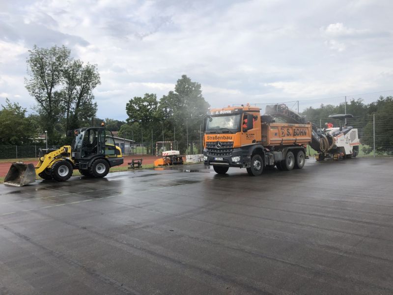 Unsere Vorgehensweise beinhaltet das Entfernen der alten Asphaltbeläge durch Ausbrechen oder das Abfräsen mithilfe unserer eigenen Asphaltfräse. Der Unterbau wird mittels Baggern und Radladern ausgetauscht und anschließend sorgfältig verdichtet, wobei Verdichtungsgeräte zum Einsatz kommen.